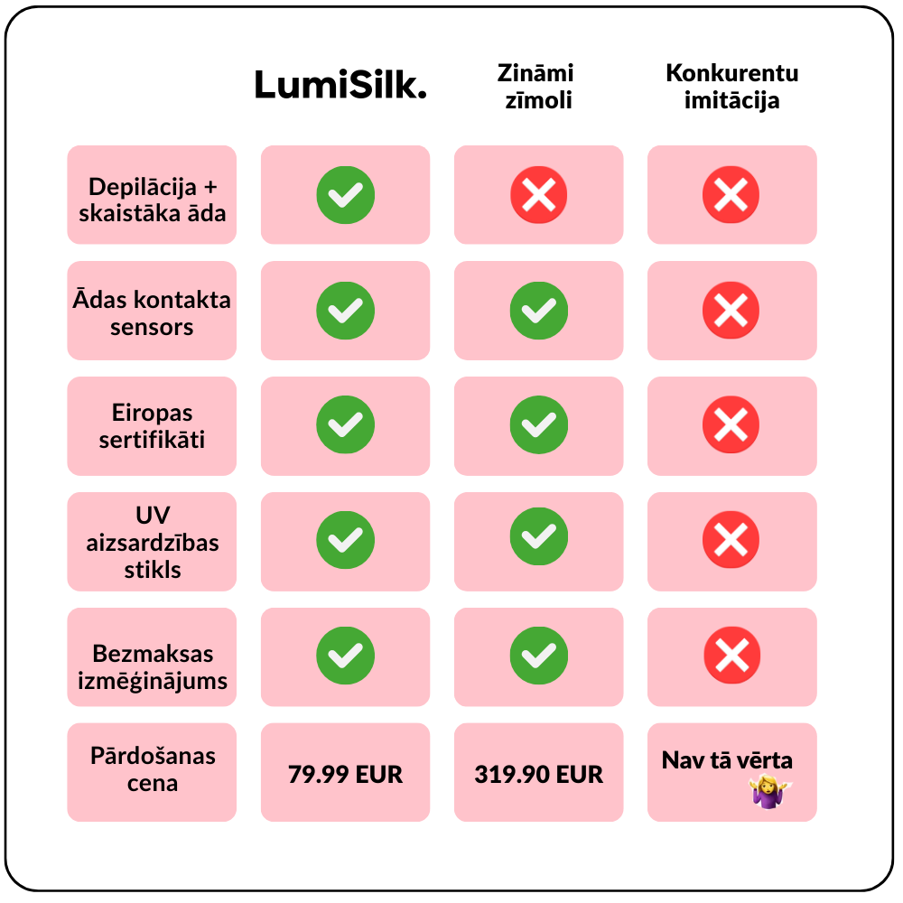 Mēs piedāvājam perfektu drošības un efektivitātes līdzsvaru, kas pārspēj zemo cenu piegādātājus, vienlaikus esot izdevīgāki nekā augstās klases zīmoli un lāzerepilācijas saloni. Iegūstiet labāko no abām pasaulēm.