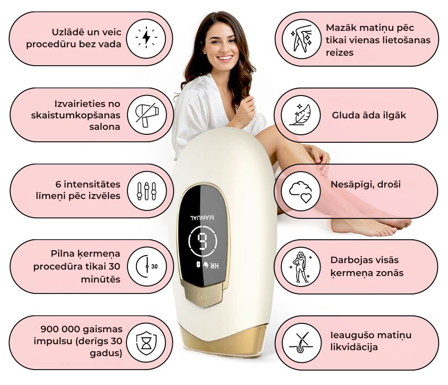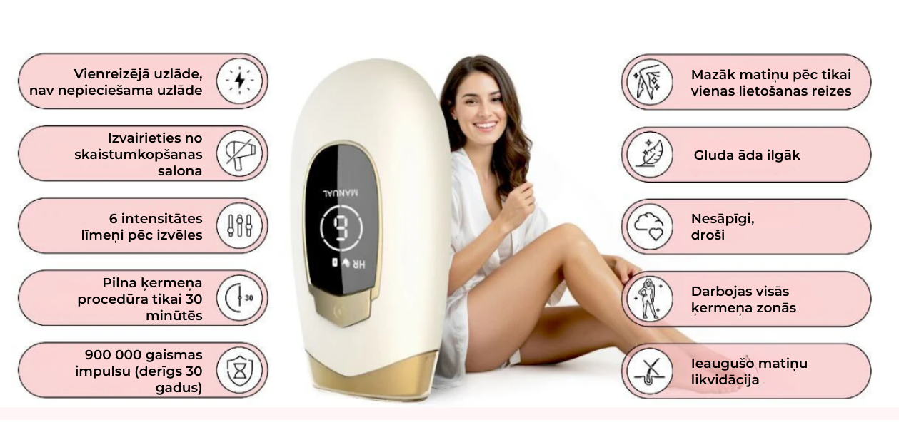 Jūsu āda būs zīdaina un bez liekajiem matiņiem. Lielākā daļa cilvēku no liekā apmatojuma atbrīvojas pilnībā pēc 12 lietošanas nedēļām.